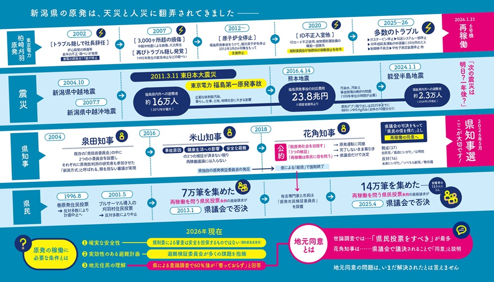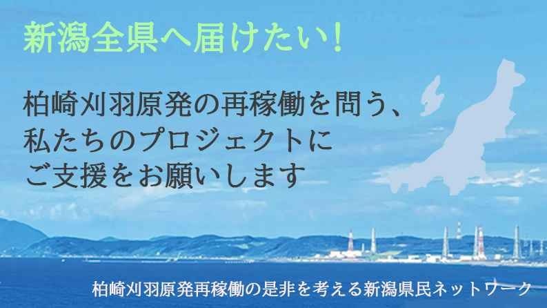 「新潟県民ネットワーク」(「柏崎刈羽原発再稼働の是非を考える新潟県民ネットワーク」)は、柏崎刈羽原発の再稼働を問うプロジェクトとして、新潟県内で40万部のリーフレット配布に取り組んでいます。