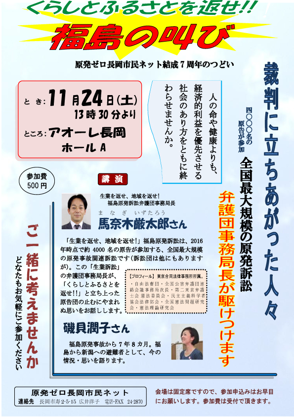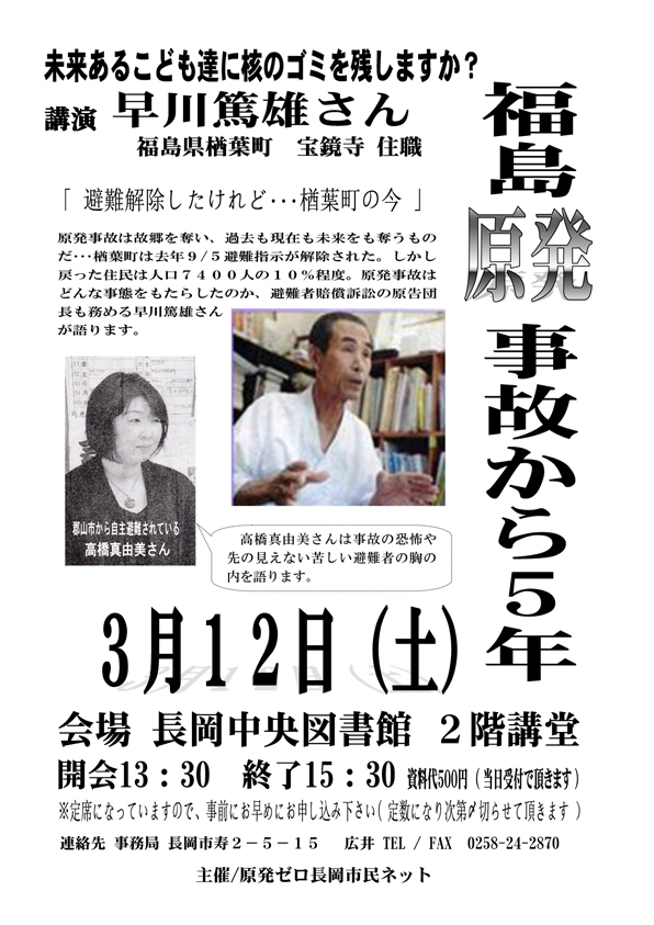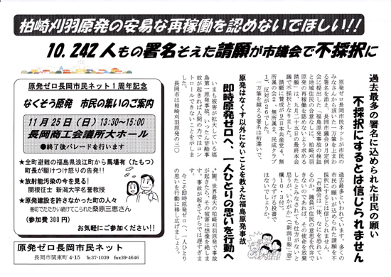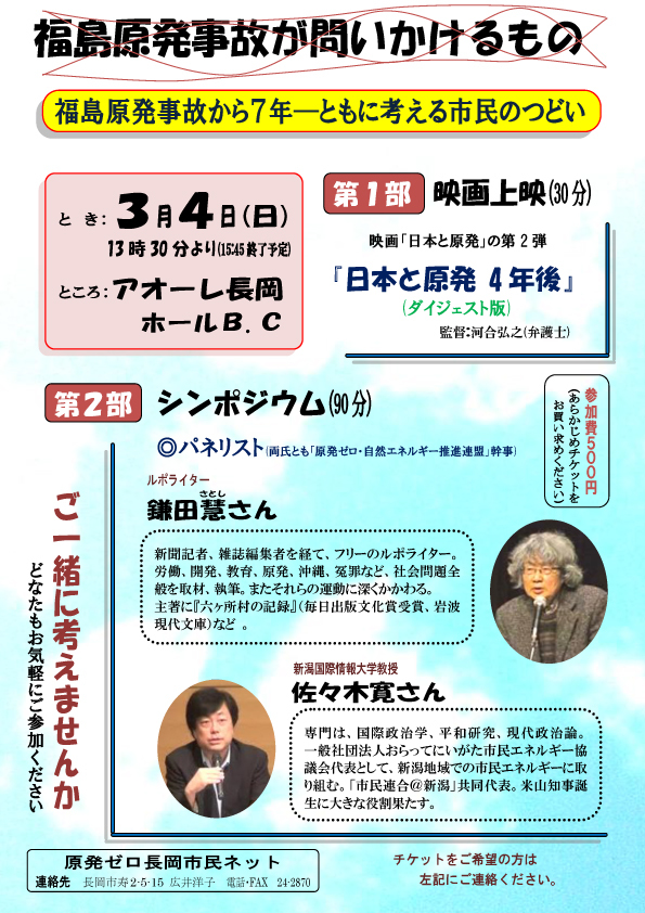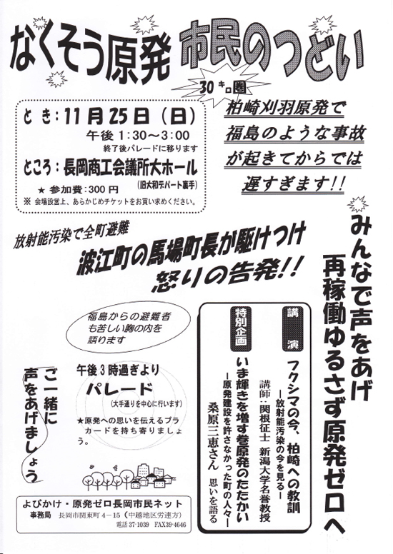 3・11 長岡集会 & パレードの様子を伝えるニュース156号を併せてお読みください。