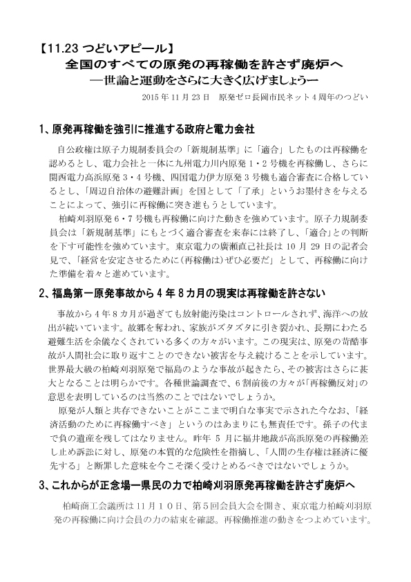 集会の様子はゼロネットニュース141号をお読みください。⇒
