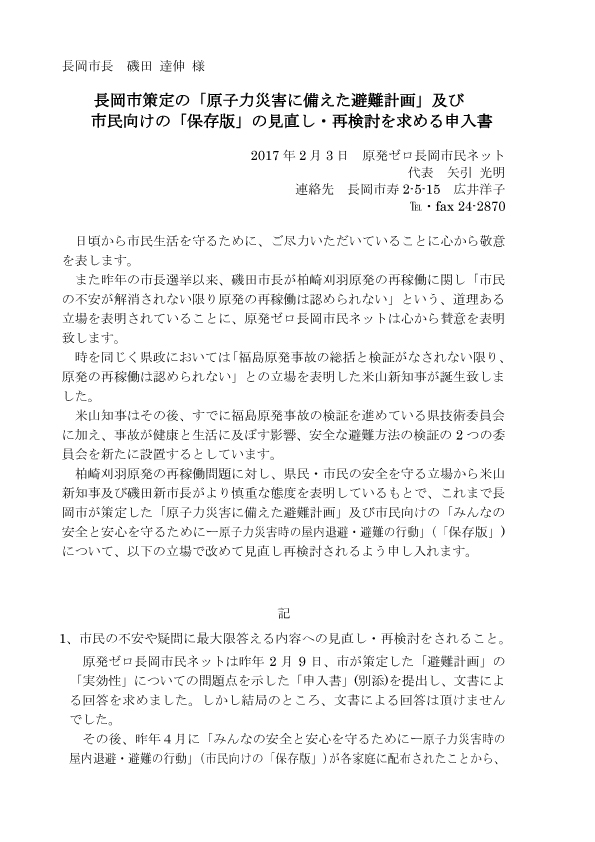 10月2日、原発ゼロ長岡市民ネットは、知事に『柏崎刈羽原発再稼働に関する公開質問状』を提出しました。.jpg)
