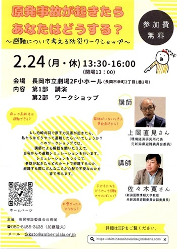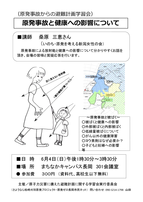 講演では、柏崎刈羽原発で重大事故が起きた時のシミュレーション結果を基に避難について説明していただきました。