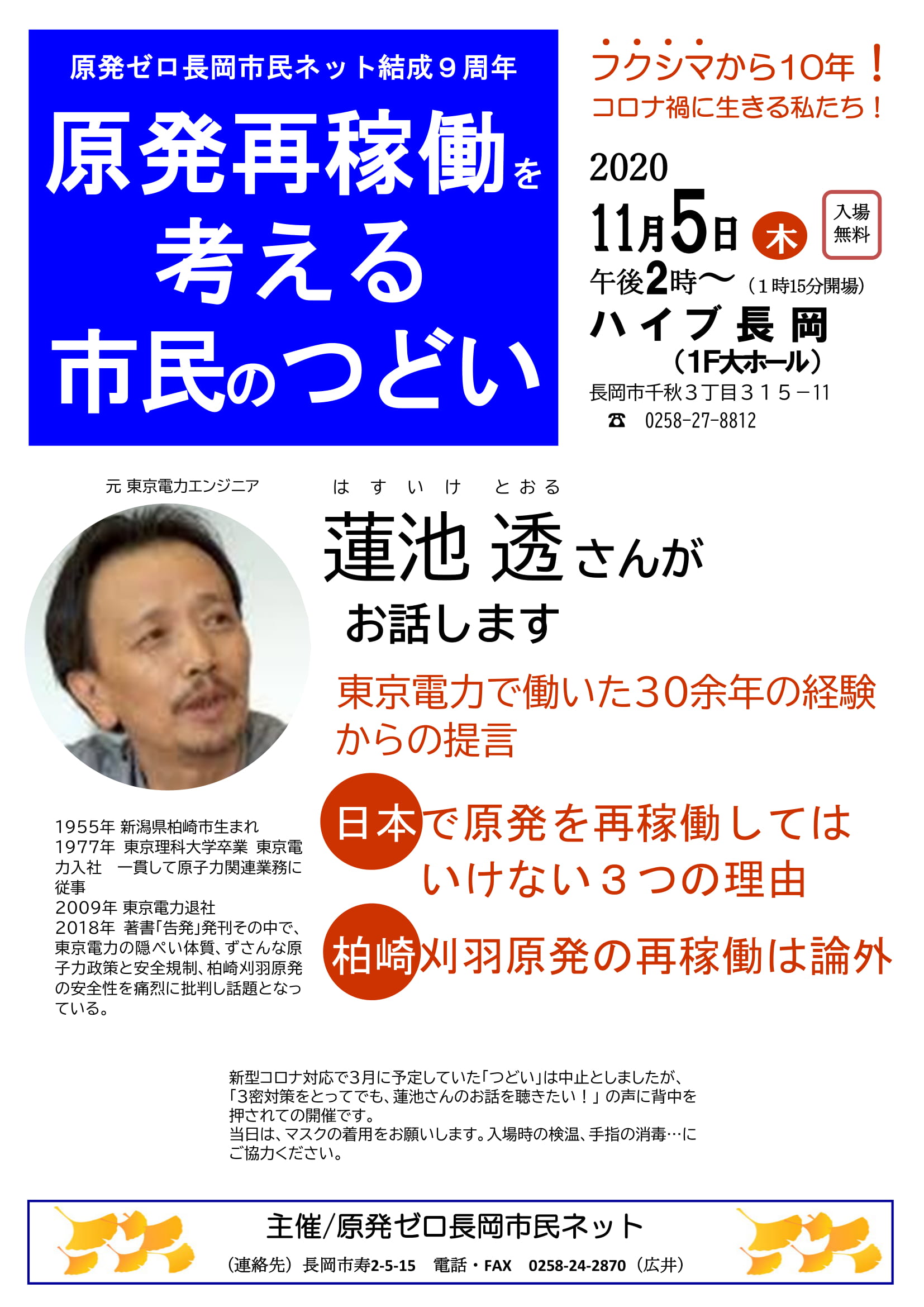 講演をお聴きして福島原発事故を柏崎刈羽原発に重ね、再稼働問題を自分のこととして考える機会になりました。