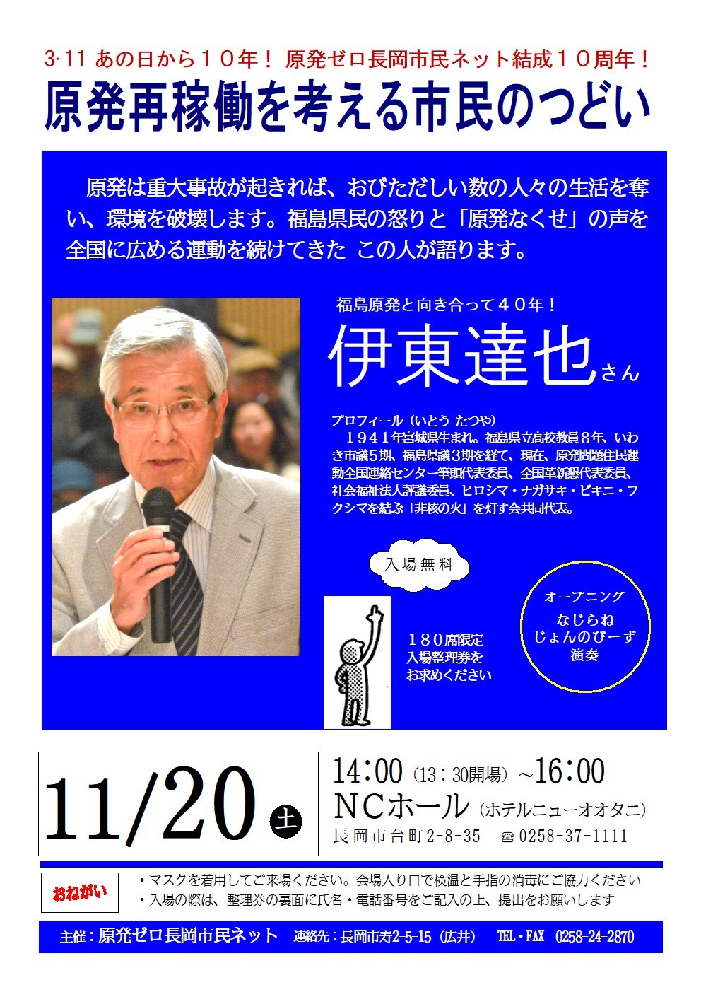 福島県民の怒りと「原発なくせ」の声を全国に広める運動を続けてきた 伊藤達也さんにお話いただきました。