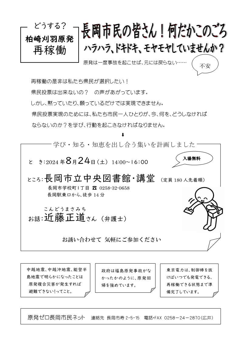 8月24日(土長岡市立中央図書館・講堂にて、近藤正道さん (弁護士)からお話いただきました。