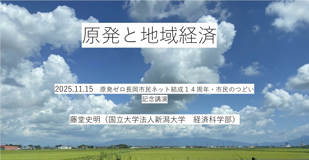 11月15日に新潟大学経済学部教授藤堂史明さん をお招きして、「原発と地域経済」 についてお話しいただきました。