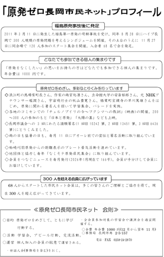 「原発ゼロ長岡市民ネット」は、2011年11月27日に発足した市民グループです。